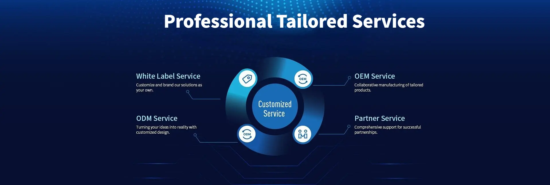 From project requirement, to massive production, we provide best professional tailored services to meet your requirements.